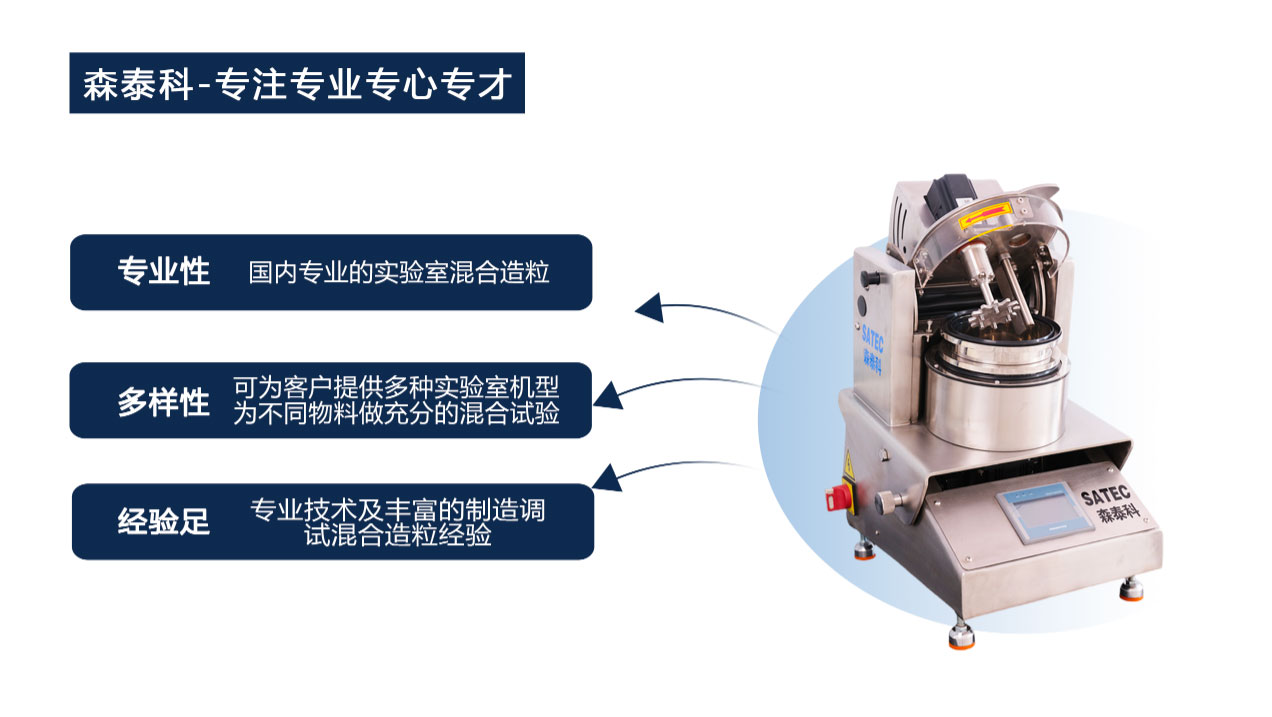 森泰科实验室混合造粒机应用场景广泛,涵盖电池材料、化工、陶瓷、冶金、磁性材料、金属材料、磨料、刹车片、型砂、铸造、碳素、环保、农业等多个领域,尤其擅长处理特别珍贵、昂贵或获取量极少的原材料,为各行业小批量研发提供全方位支持。